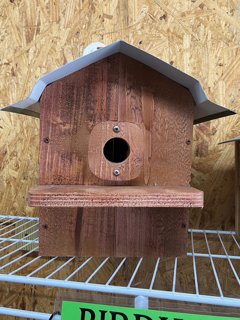 Don’t let your feathered friends settle for prefabricated housing. Colorful robins, martins, chickadees, and more will flock to your eclectic backyard avian subdivision filled with one-of-kind homes. Whether you want a shack for a starling, a cottage for a cardinal, or a bungalow for a blue jay, you’ll find the perfect bird abode here. Most designs are rustic, featuring corrugated scrap tin roofs and awnings. Mark and Karen hang several in their yard, and there’s never a vacancy.